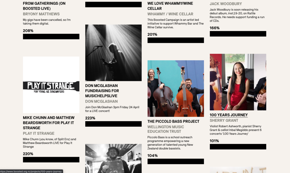 With a stunning success rate of over 90%, this platform has become a crucial outlet for our creative arts community to tell their story, engage their audiences and further their craft. Boosted is making giving to the arts both simple accessible and incredibly effective.